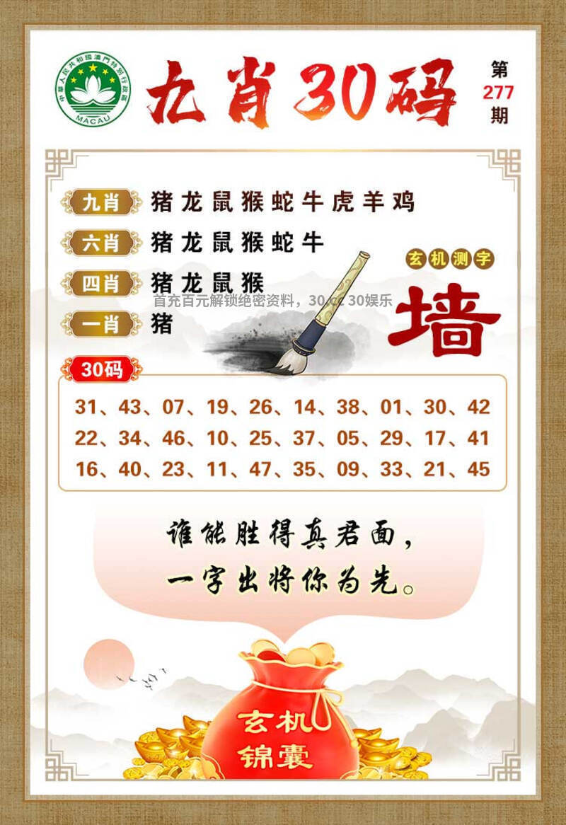 277期:★绝杀三肖★【马龙猪】开:虎16